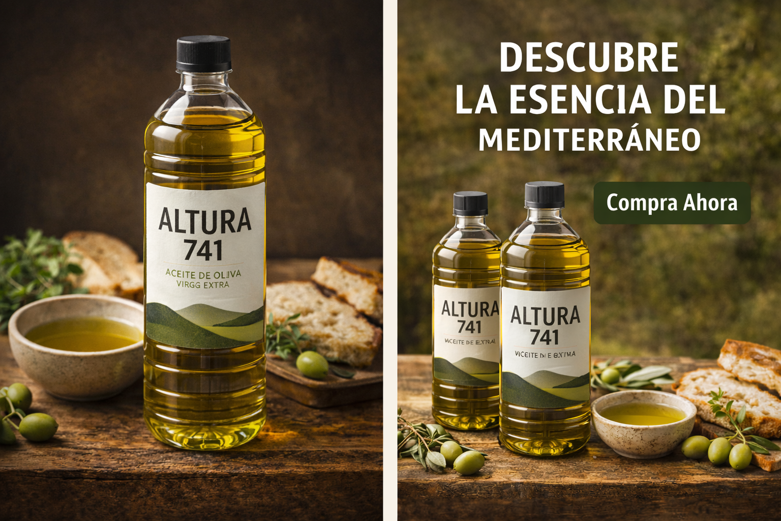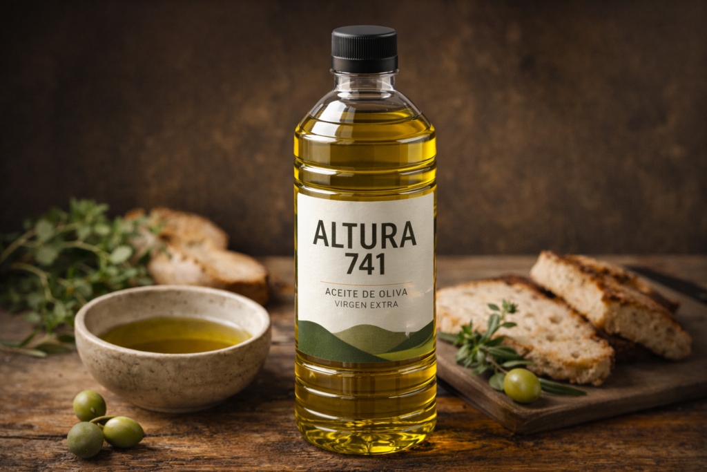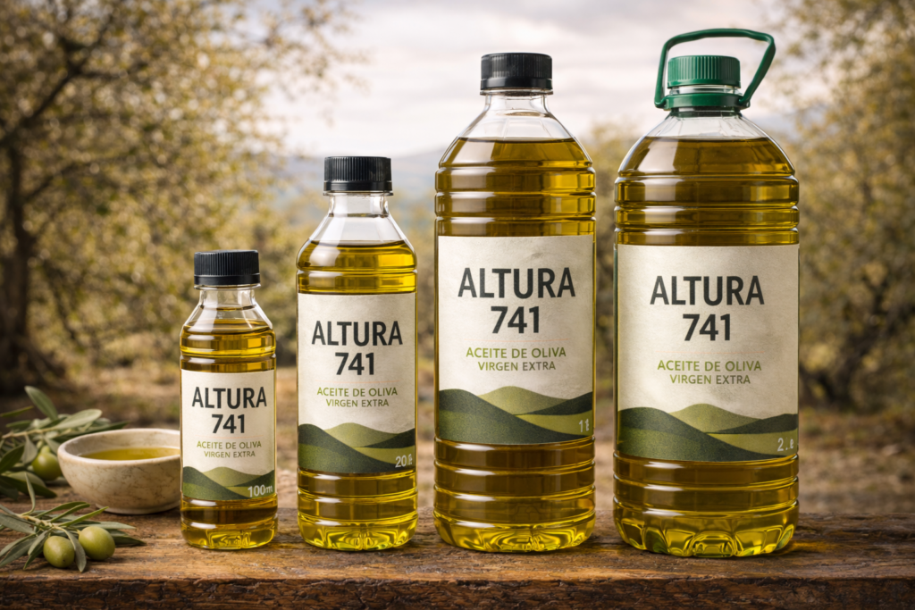 En altura 741 vendemos aceite de oliva puro con un diseño sencillo y natural que refleja nuestra pasión por la calidad.